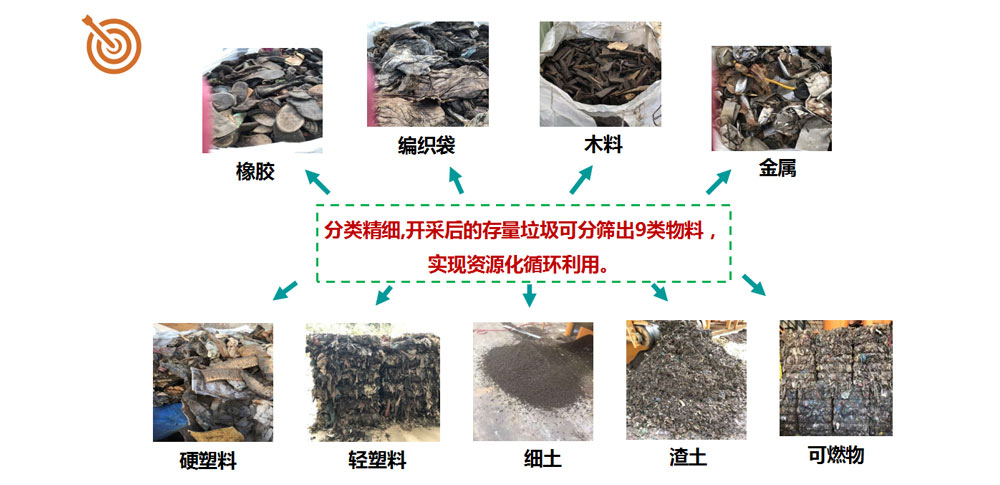 本技术通过彻底清除填埋垃圾,不再有污染产生,极大增强了周边居民的满意度,具备较高的社会效益,同时通过最优的设备、人力配置以及整合上下游处置企业,有效降低了分选和处置成本,具有较高的经济效益。
